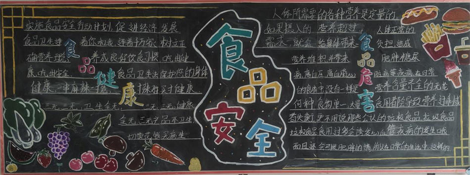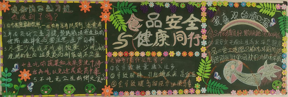 全國(guó)食品安全宣傳周活動(dòng),食品安全關(guān)乎每個(gè)人的健康,學(xué)生們以我學(xué)我寫,我能我畫的形式,一起制作了簡(jiǎn)單又漂亮的食品安全宣傳周黑板報(bào),學(xué)生們用心制作的食品安全黑板報(bào),都寄托了學(xué)生呼吁食品安全的心聲,倡導(dǎo)食品安全,給我們一個(gè)健康的身體的心愿。
