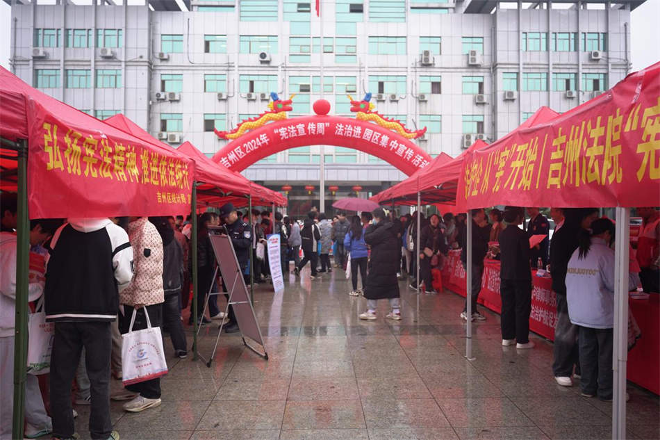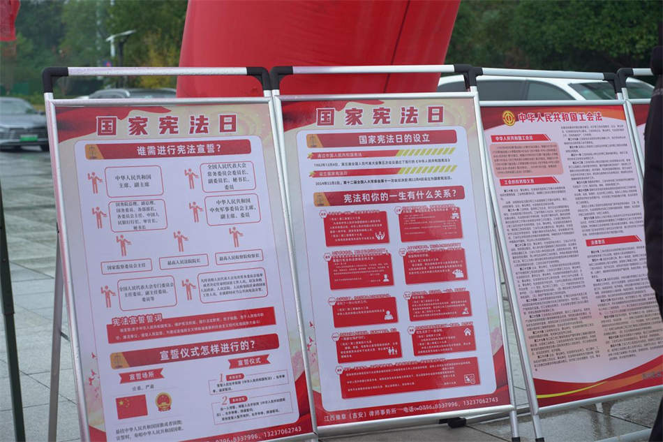 隨著今年12月4日第十一個(gè)國(guó)家憲法日的到來,以及12月1日至7日第七個(gè)“憲法宣傳周”的深入展開,全國(guó)上下再次掀起了一股學(xué)習(xí)憲法、弘揚(yáng)法治的熱潮。憲法宣傳活動(dòng)在維護(hù)國(guó)家法治根基、提升公民法治素養(yǎng)、促進(jìn)社會(huì)和諧穩(wěn)定等方面扮演著至關(guān)重要的角色。它不僅強(qiáng)化了憲法的權(quán)威地位,樹立了全民法治信仰;還致力于提升公民的法律意識(shí),推動(dòng)全民守法的新風(fēng)尚;更在維護(hù)社會(huì)穩(wěn)定、推進(jìn)法治社會(huì)建設(shè)方面發(fā)揮了不可估量的作用。值此重要時(shí)刻,我校積極響應(yīng)國(guó)家號(hào)召,選派學(xué)生代表,滿懷熱情地前往吉州區(qū)工業(yè)園區(qū)管委會(huì)主辦的憲法宣傳周活動(dòng)現(xiàn)場(chǎng),與各界人士一同參與這場(chǎng)意義深遠(yuǎn)的法治盛會(huì),共同為構(gòu)建法治中國(guó)添磚加瓦。