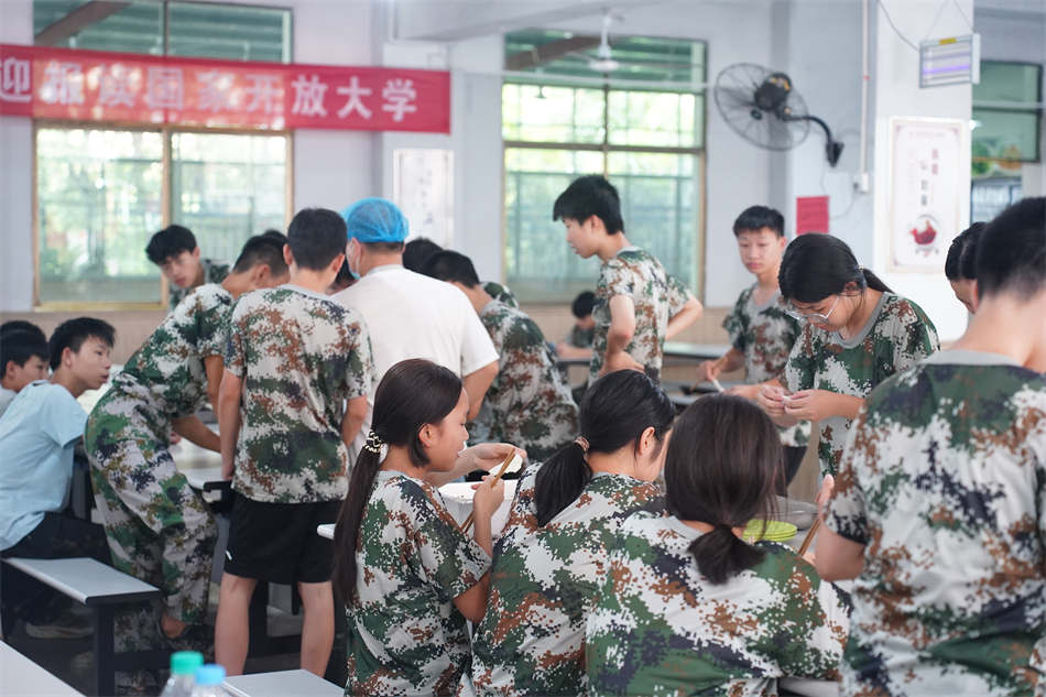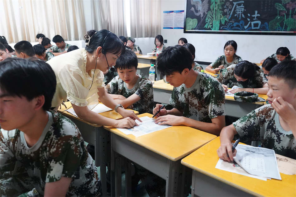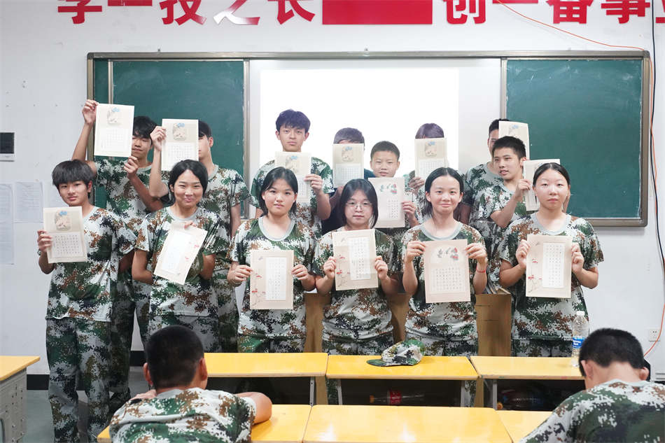 訓(xùn)練場(chǎng)上,教官正逐個(gè)糾正學(xué)員的敬禮手勢(shì):“手腕再平一點(diǎn),目光看向前方!”課間休息時(shí),他卻微笑著遞上礦泉水:“今天比昨天進(jìn)步多了,繼續(xù)保持!”教室里,書法課的老師正俯身查看學(xué)生臨寫的硬筆楷書作業(yè),提出建議:“注意橫畫起筆要像刀刻般利落,收尾時(shí)筆尖順勢(shì)輕提。”這種嚴(yán)慈相濟(jì)的指導(dǎo),讓學(xué)員們?cè)谶m應(yīng)節(jié)奏的同時(shí),也感受到成長(zhǎng)的溫度。