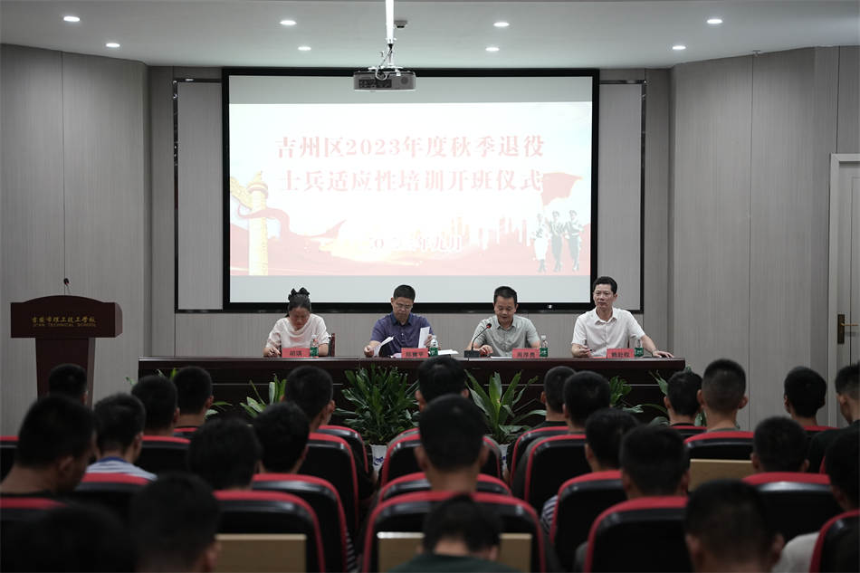 吉州區(qū)退役軍人事務(wù)局、吉安退役軍人就業(yè)創(chuàng)業(yè)孵化基地、吉安市理工技工學(xué)校相關(guān)領(lǐng)導(dǎo)出席, 66名退役士兵參加。