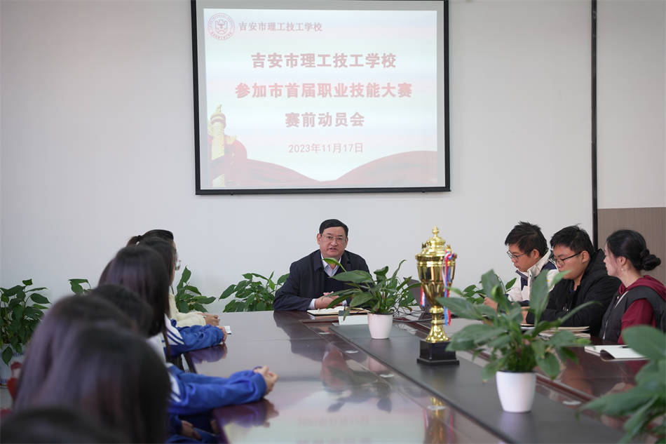 2023年吉安市第一屆職業(yè)技能大賽即將拉開序幕,為了迎接比賽的到來,做好賽前準(zhǔn)備工作,11月17日上午,吉安市理工技工學(xué)校在綜合樓會(huì)議室召開技能大賽賽前動(dòng)員會(huì),以表斗志,以壯士氣。執(zhí)行校長汪榮華、參賽項(xiàng)目領(lǐng)隊(duì)、指導(dǎo)老師及選手、教務(wù)處相關(guān)負(fù)責(zé)人參加了本次會(huì)議。