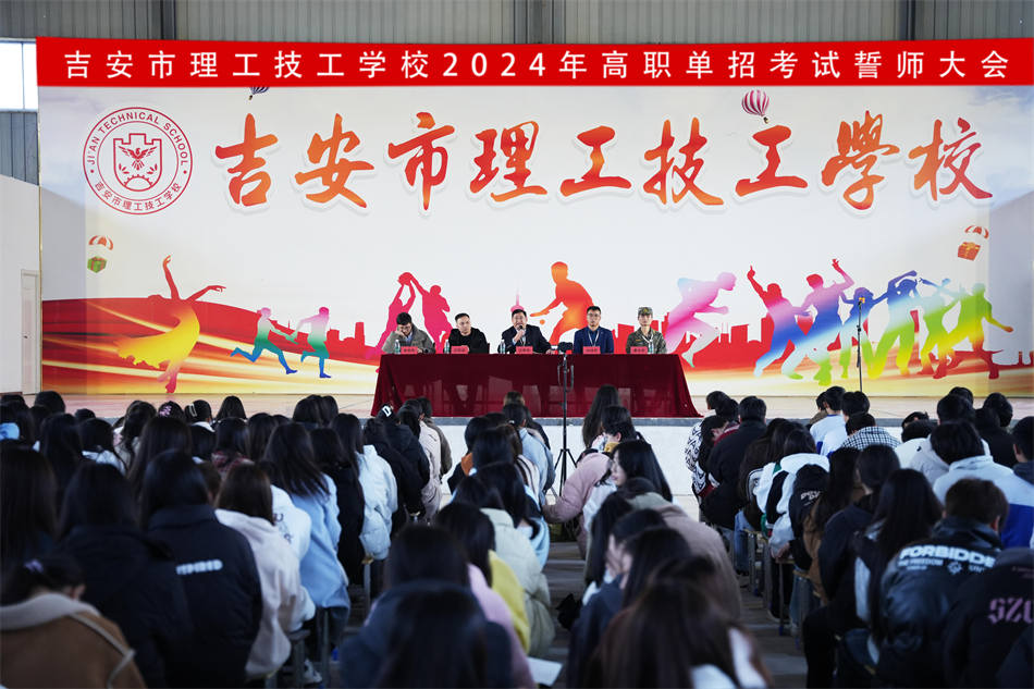 少年應(yīng)有鴻鵠志,當(dāng)騎駿馬踏平川。2024年3月14日,吉安市理工技工學(xué)校高職單招考試誓師大會(huì)在校文體中心隆重舉行,21級(jí)全體師生齊聚一堂,共同吹響迎戰(zhàn)單招考試“沖鋒號(hào)”。大會(huì)由黨政辦李世序主任主持,執(zhí)行校長汪榮華、學(xué)工處主任洪治開、教務(wù)處負(fù)責(zé)人江旺慶、學(xué)工處副主任唐永杰等出席。