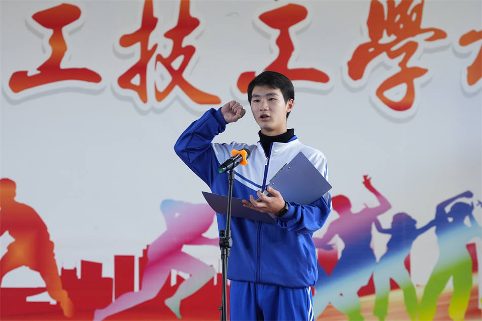 大會(huì)在激情昂揚(yáng)的宣誓中進(jìn)入高潮,在學(xué)生代表黃圣銘的帶領(lǐng)下,全體學(xué)生舉起右手,莊嚴(yán)宣誓: