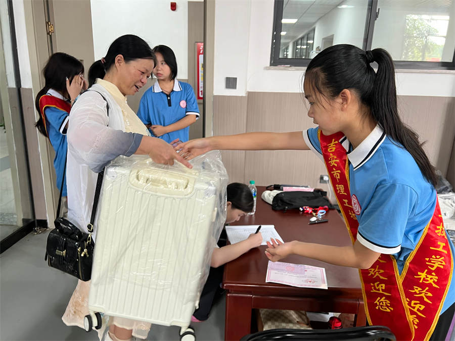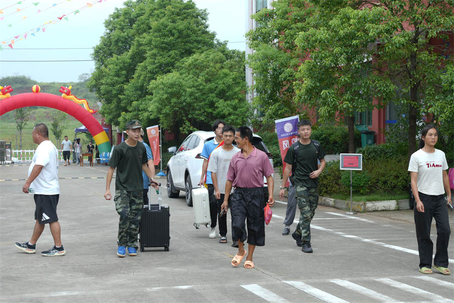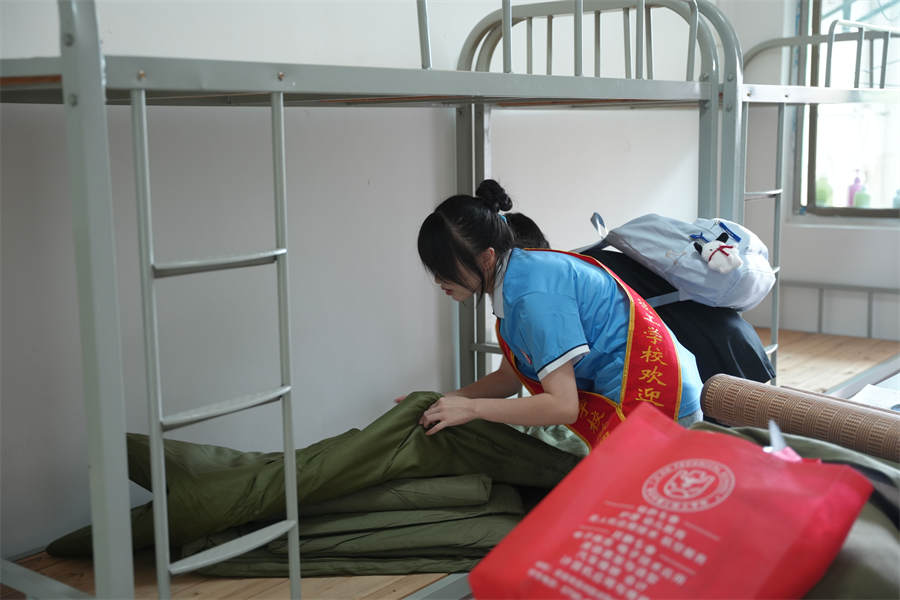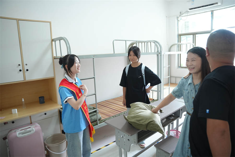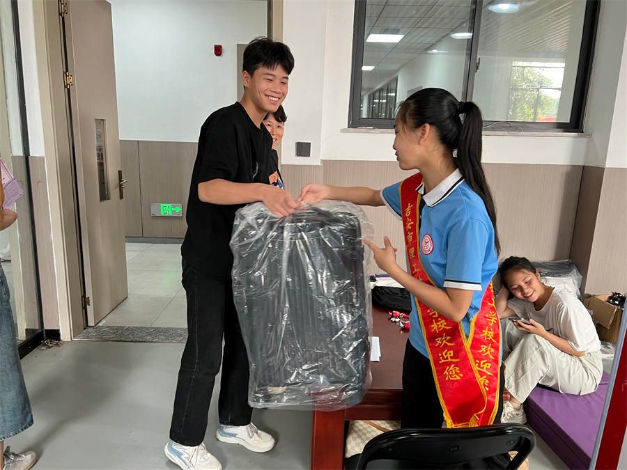 校園里,學(xué)生、老師、志愿者忙碌在各個(gè)環(huán)節(jié),協(xié)助新同學(xué)搬運(yùn)行李、辦理手續(xù)等,幫助新生迅速熟悉學(xué)校,志愿者熱情帶領(lǐng)學(xué)生從進(jìn)校門到安排好寢室,并幫忙整理床鋪打掃衛(wèi)生,服務(wù)體貼入微。