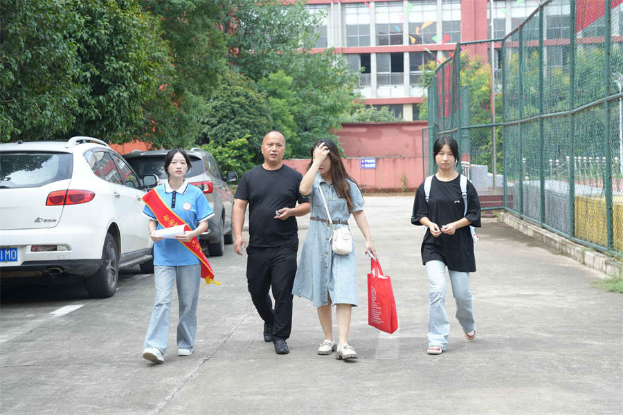 進(jìn)入校園后,引導(dǎo)學(xué)生家長(zhǎng)前往綜合樓。