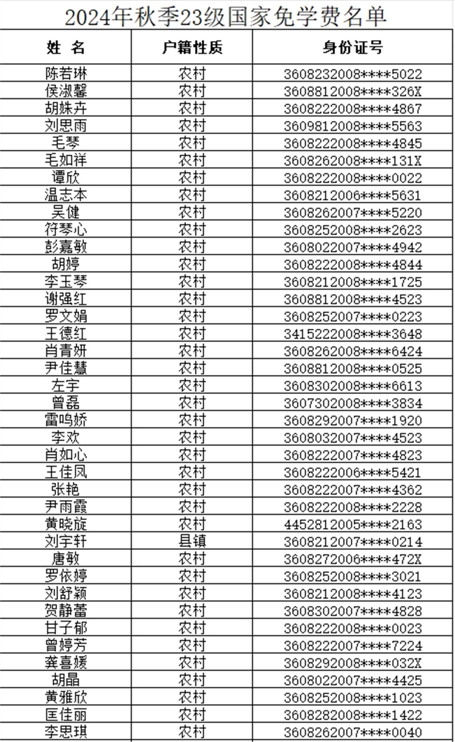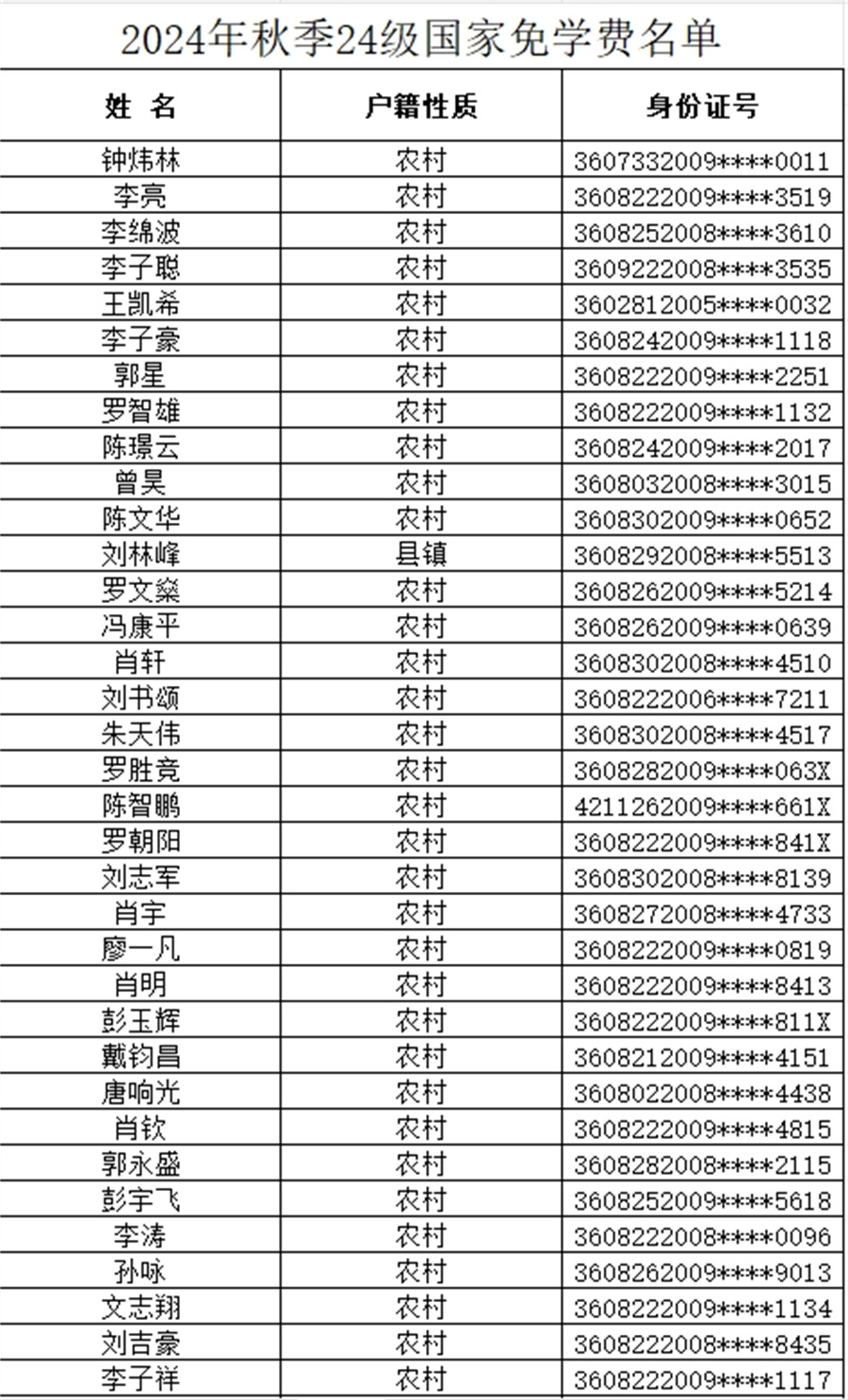 吉安市理工技工學(xué)校2024-2025學(xué)年上學(xué)期免學(xué)費名單已公布,如有疑問請于公示日期內(nèi)向校資助中心反映。